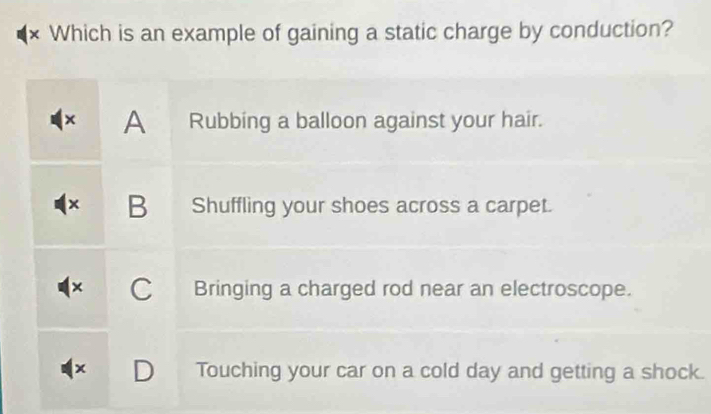Solved: × Which is an example of gaining a static charge by conduction ...