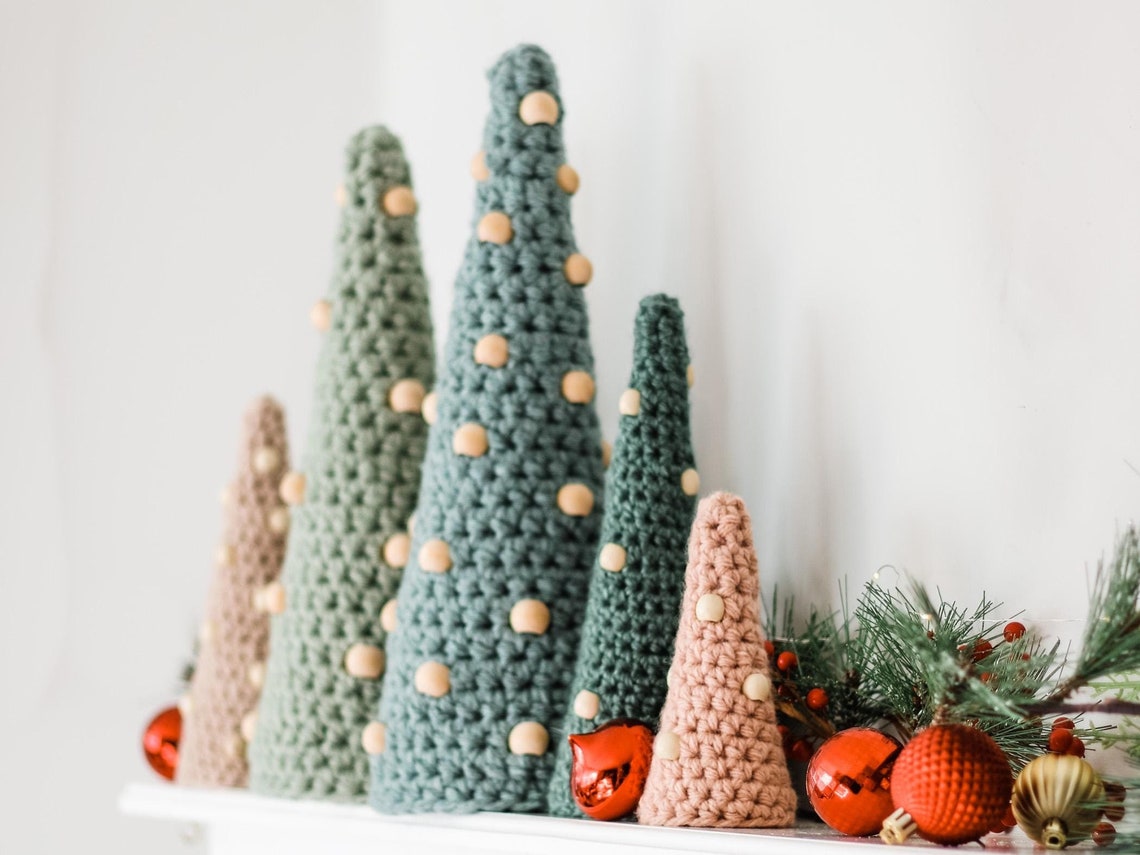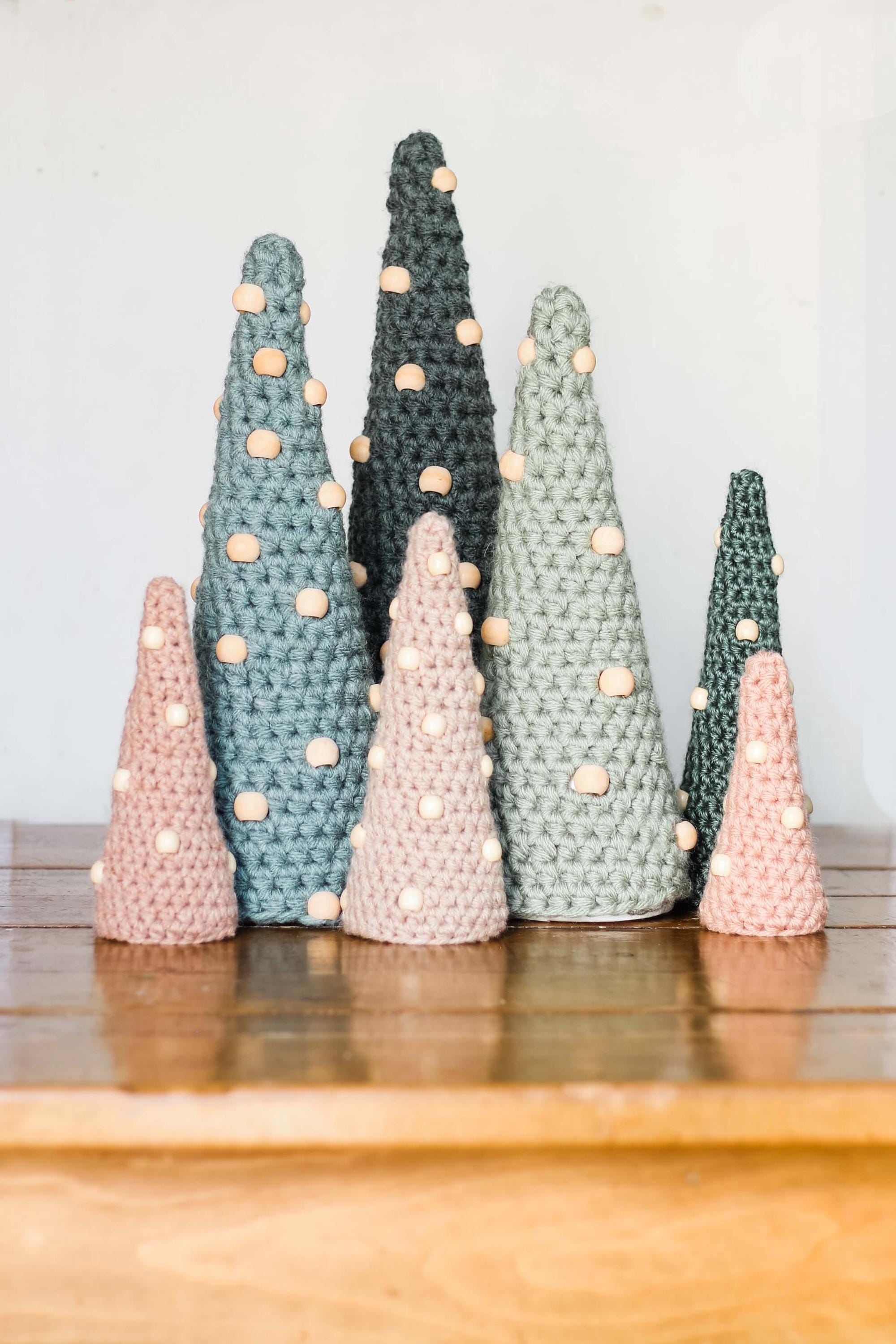 Farmhouse Crochet Christmas Trees With Beads | Pattern + Video » Make ...