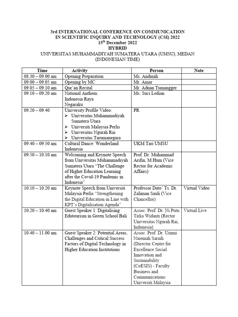 Tentative Schedule For Conference | PDF