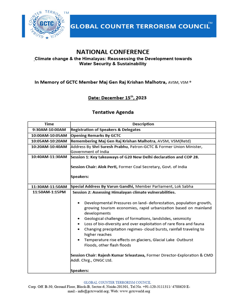 Tentative Conference Agenda Climate Change & Himalayas | PDF ...