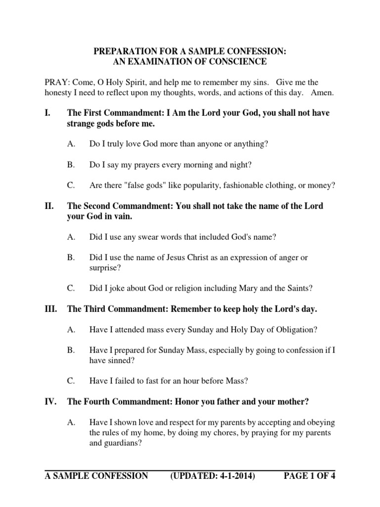 How to Prepare for Confession: a Detailed Examination of Conscience ...