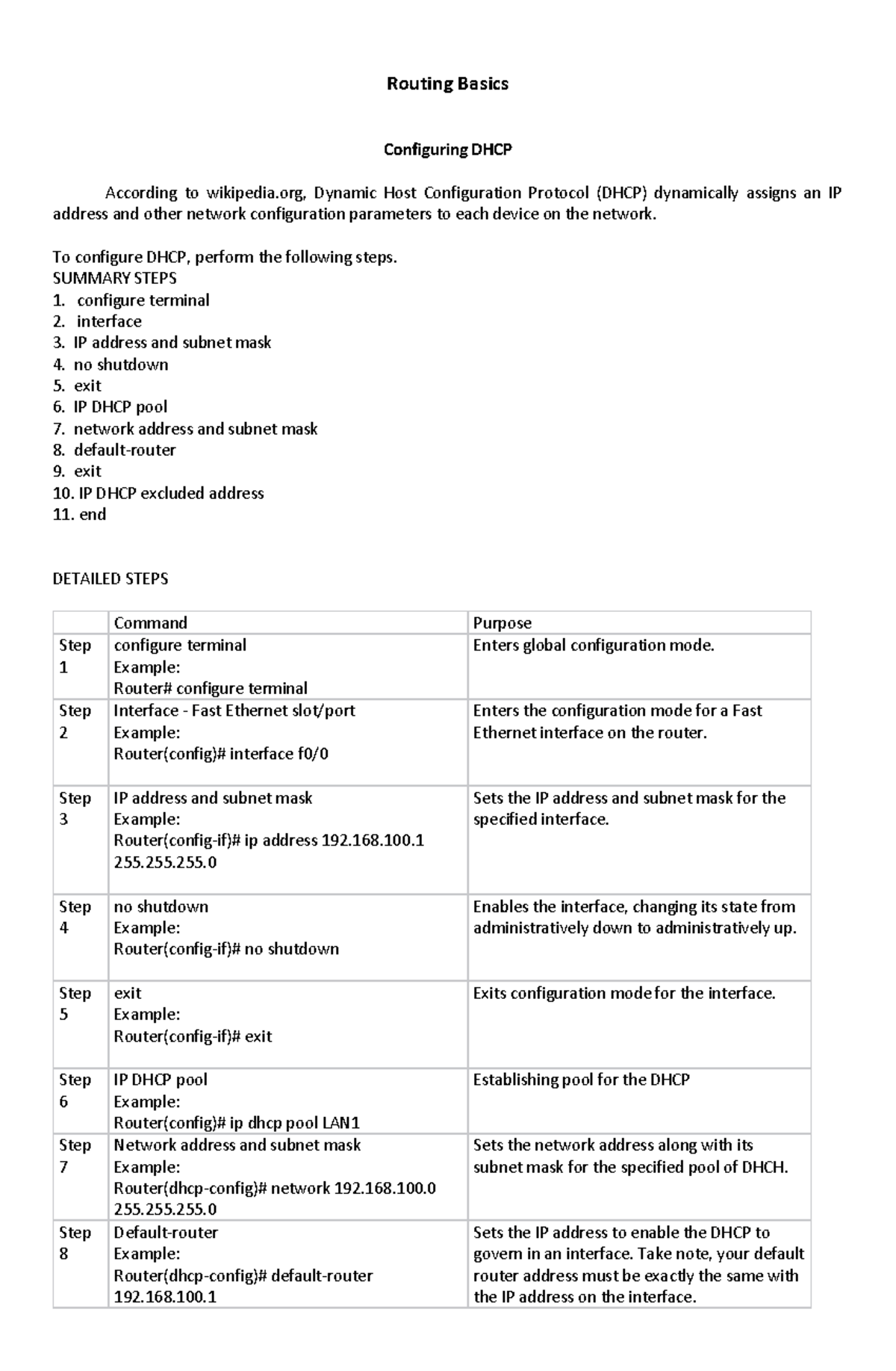 Configuring DHCP (Dynamic Host Configuration Protocol) - Routing Basics ...