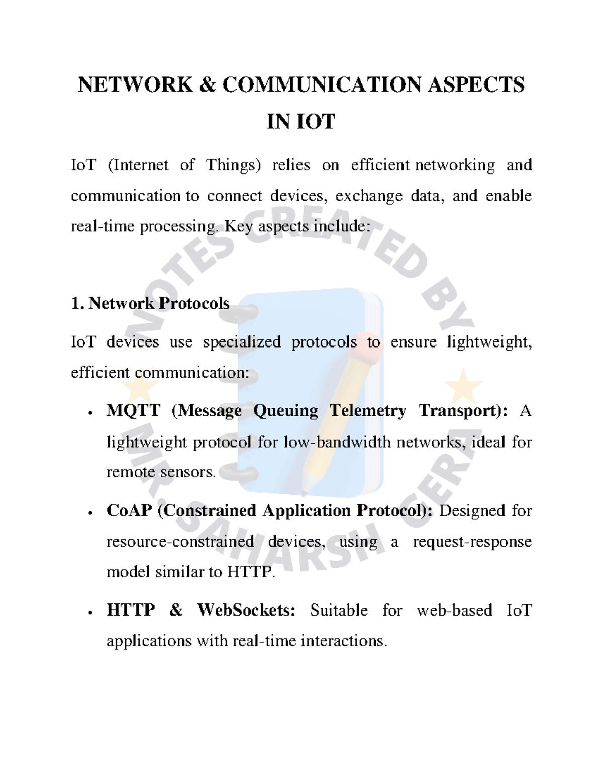 28 Network Communication Aspects in IoT: Protocols & Technologies - Studocu