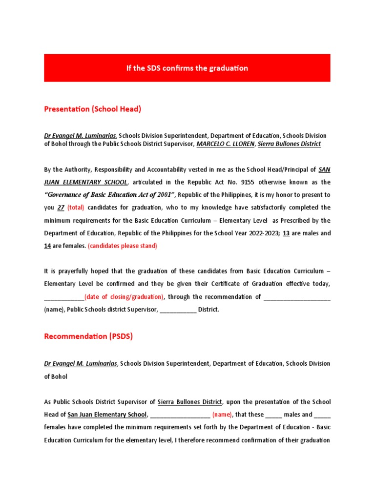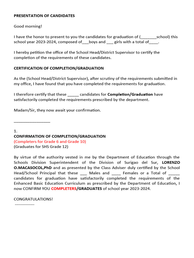 Graduation Rites Script (Presentation, Certification & Confirmation ...