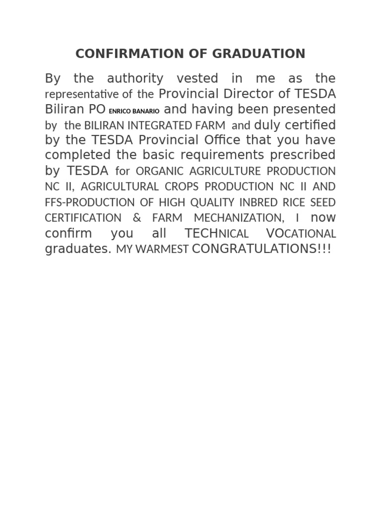 Graduation Confirmation Letter