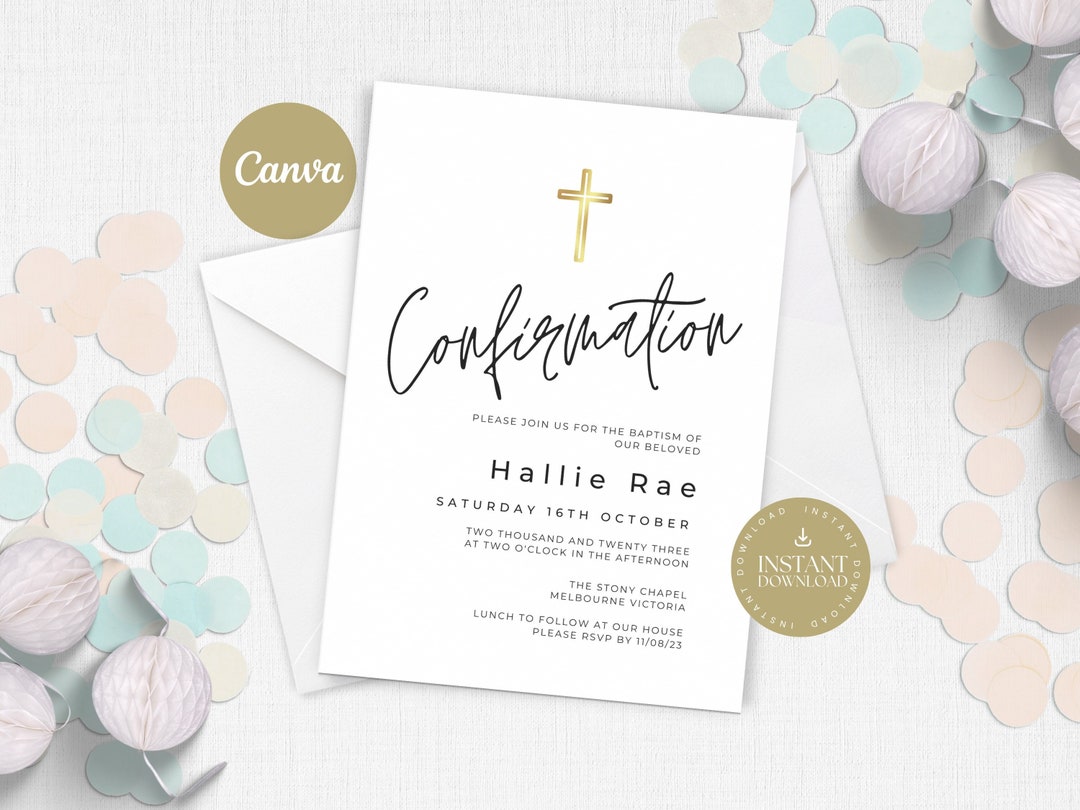 Minimalist Confirmation Invitation Template, Modern Confirmation Party ...