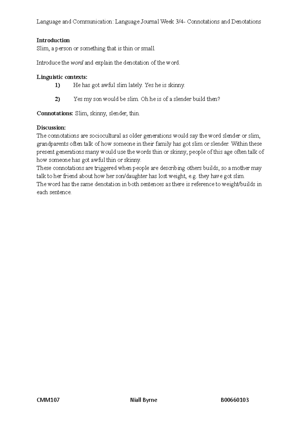 Connantions journal 3 - assignments - Language and Communication ...