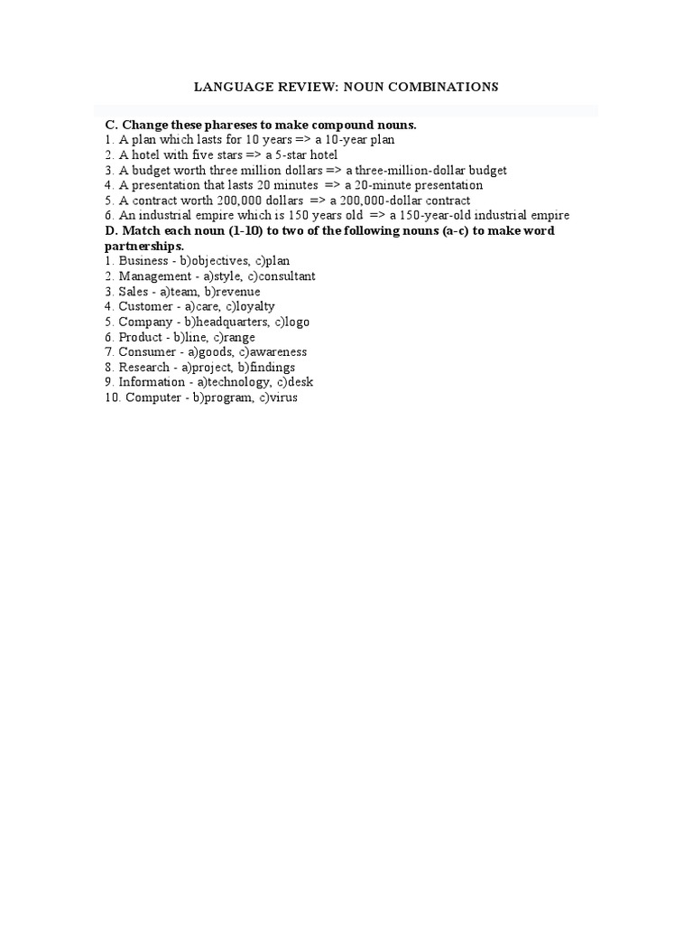 Noun Combinations and Partnerships Guide | PDF