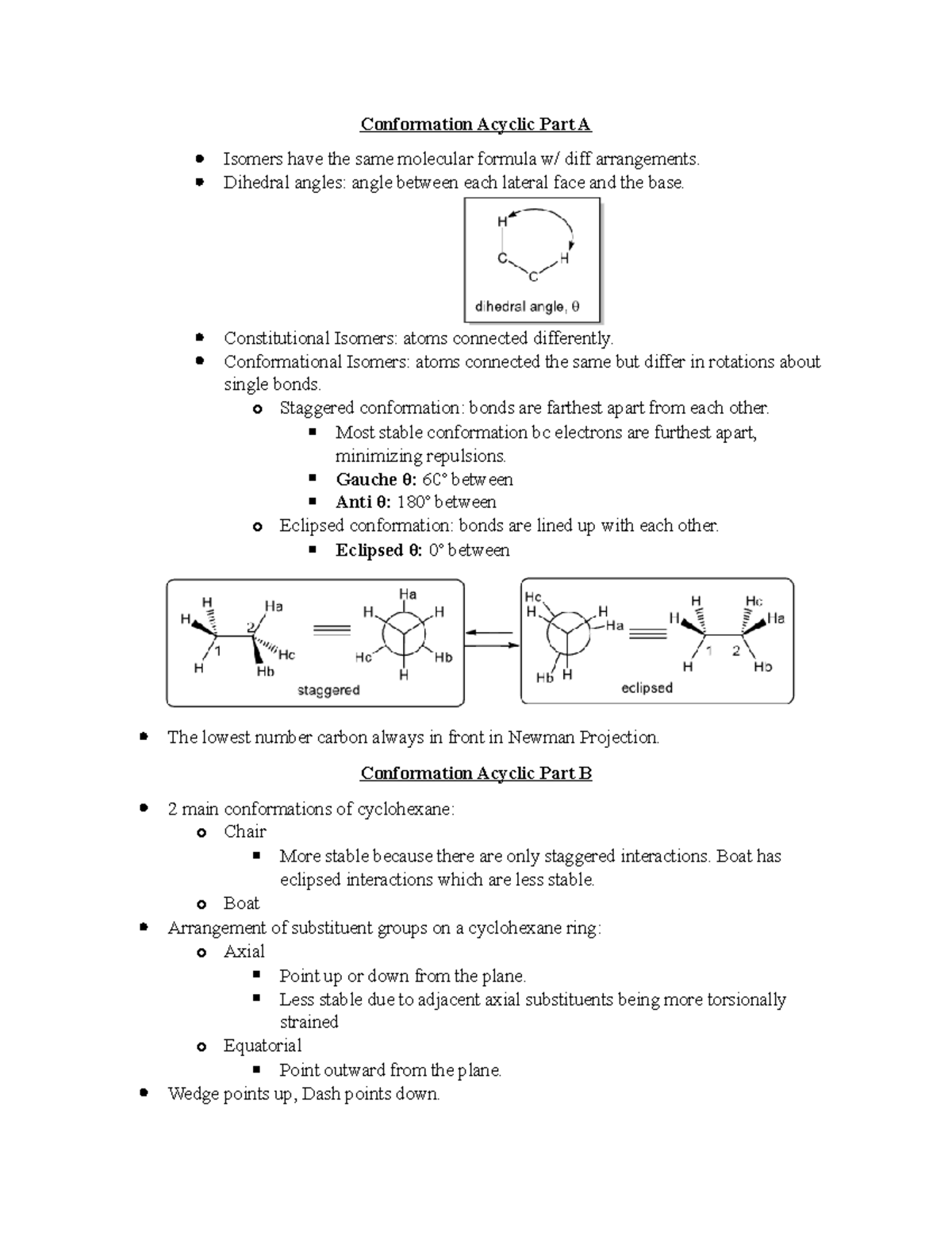 Study guide quiz 2 - Summary Organic Chemistry I - Conformation Acyclic ...