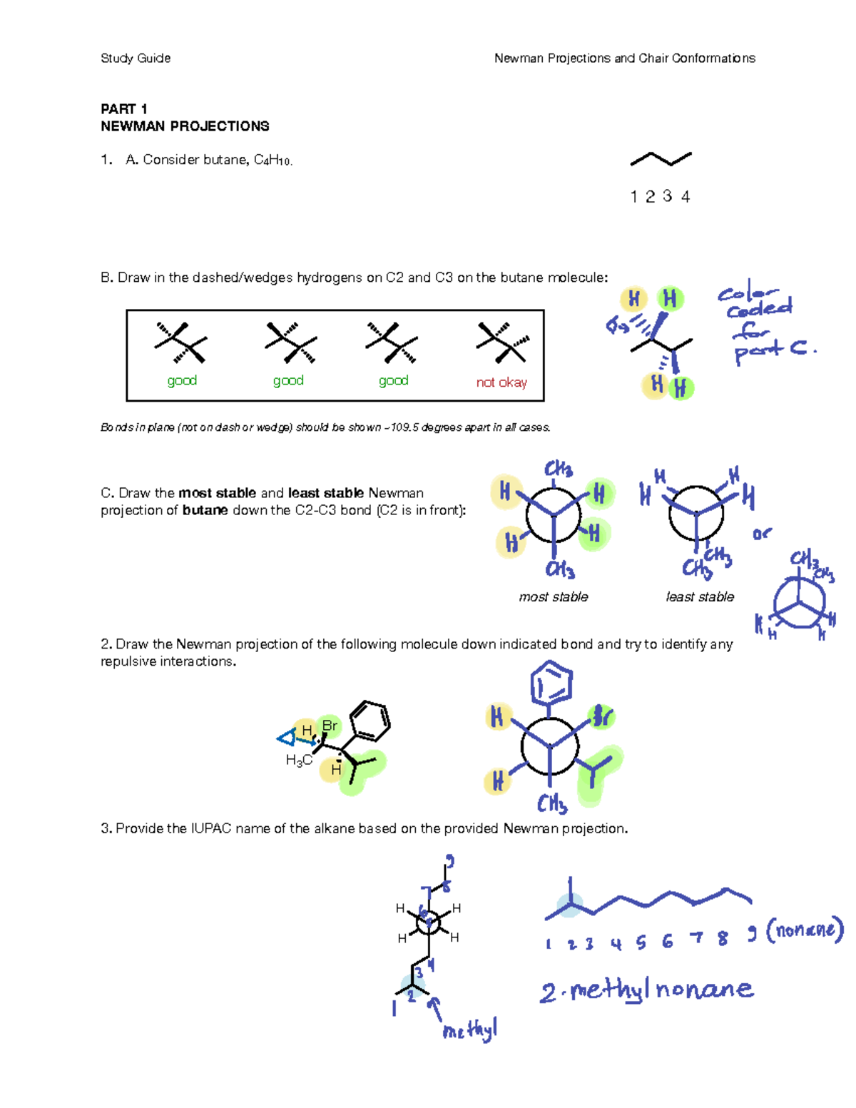 Conformation Study Guide.pdf - Study Guide Newman Projections and Chair ...