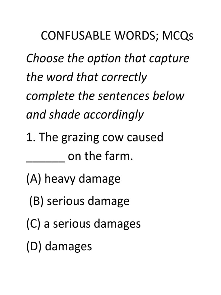 ENGLISH GRAMMAR QUIZ ON CONFUSABLE WORDS: Choose The Correct Answer ...