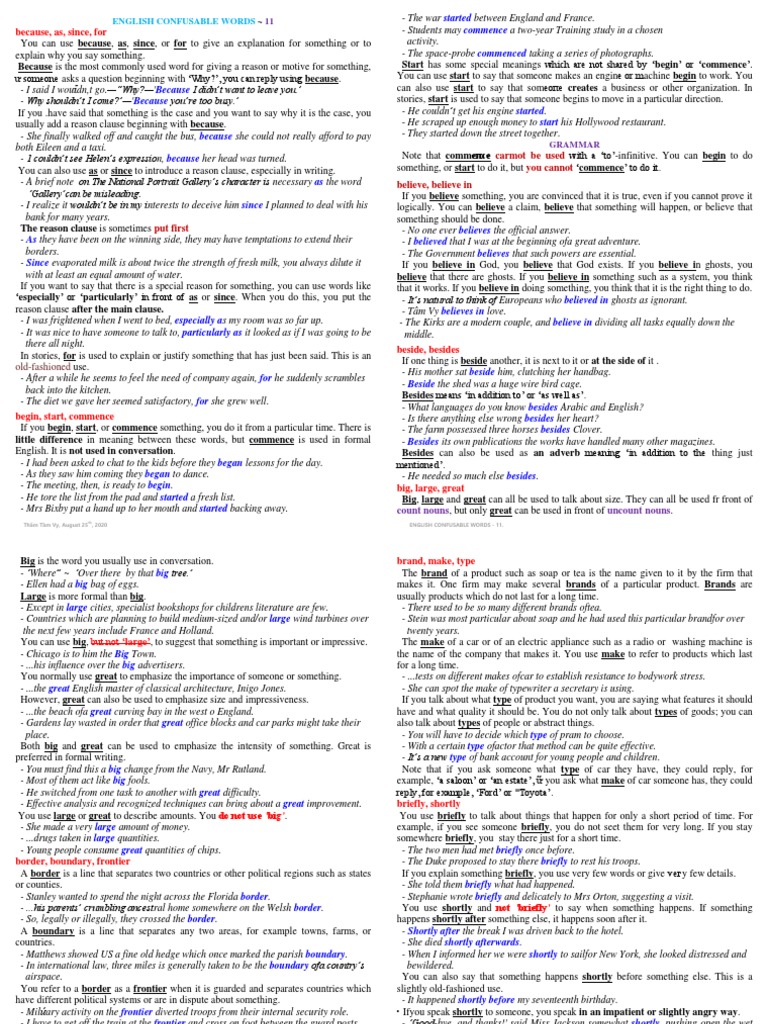 English Confusable Words 11 | PDF | Reason