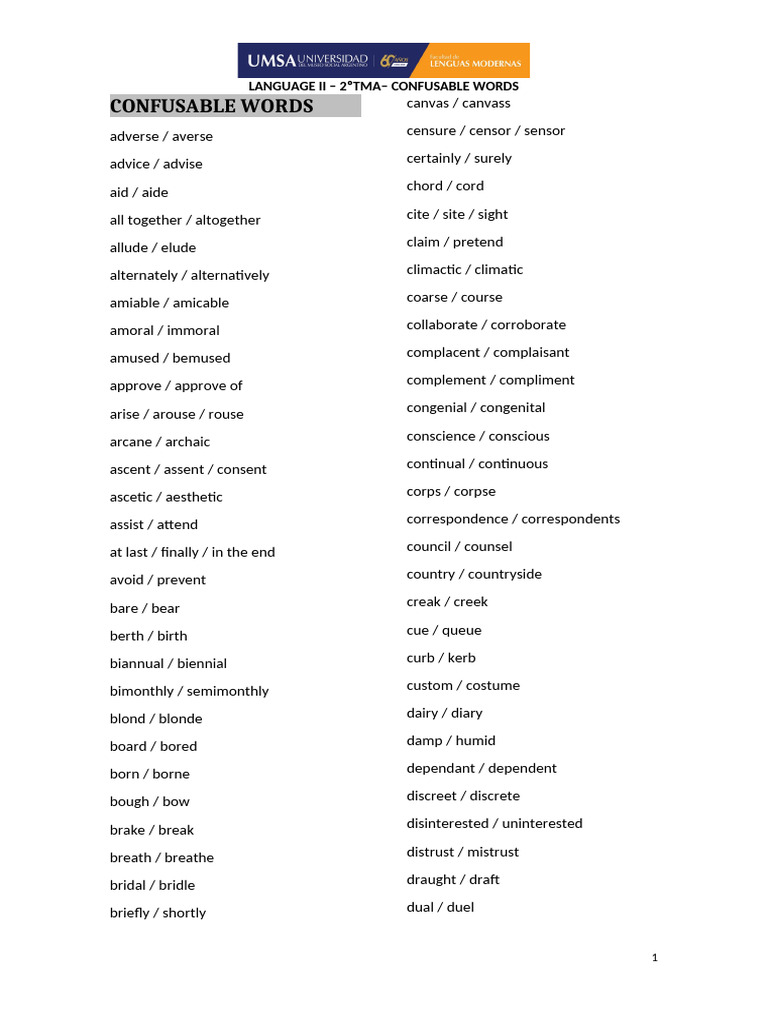 Confusable Words Final 1 4 | PDF