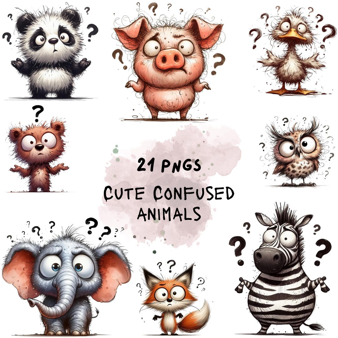 21 Cute Confused Animals Clipart Bundle, Funny Watercolor Animal ...