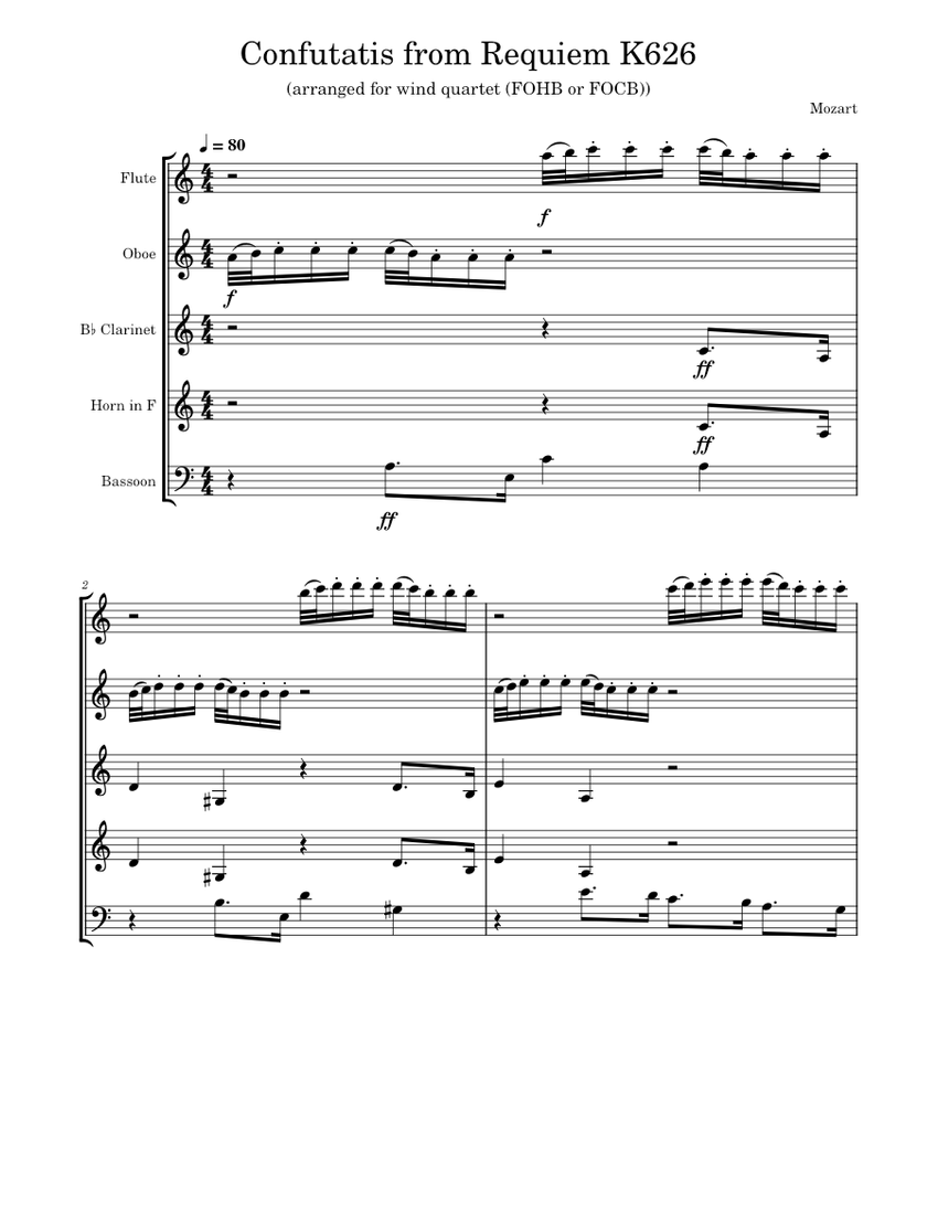 Requiem : Confutatis - Wolfgang Amadeus Mozart (score for concert band ...