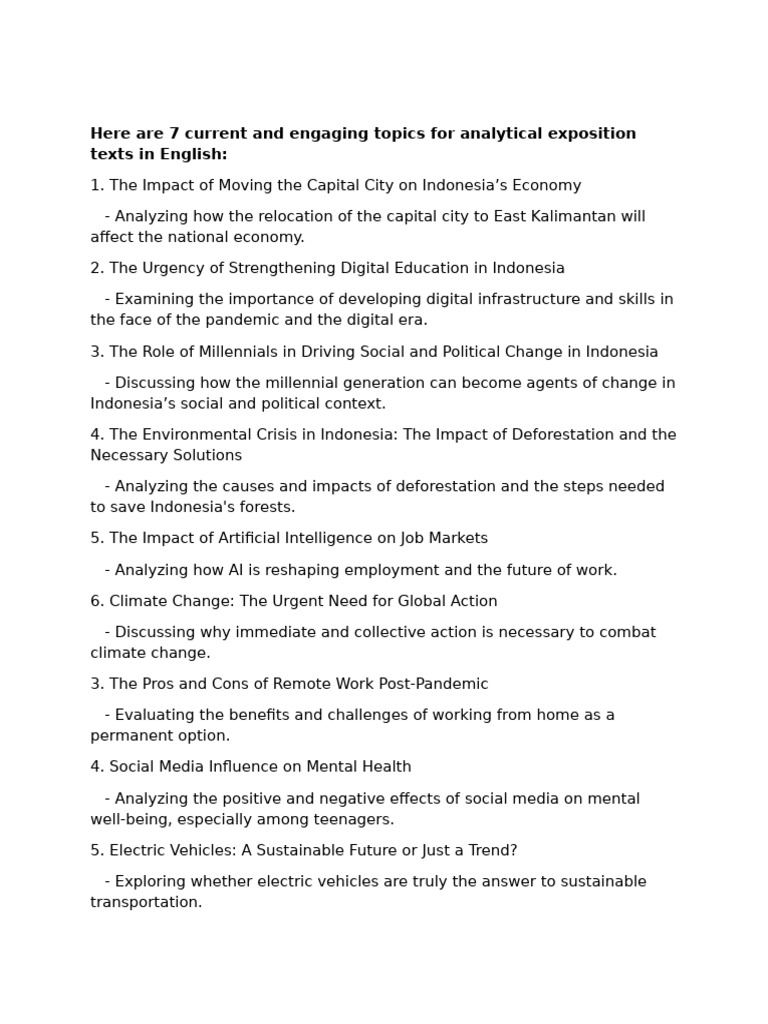 7 Current and Engaging Topics and An Example of Analytical Exposition ...