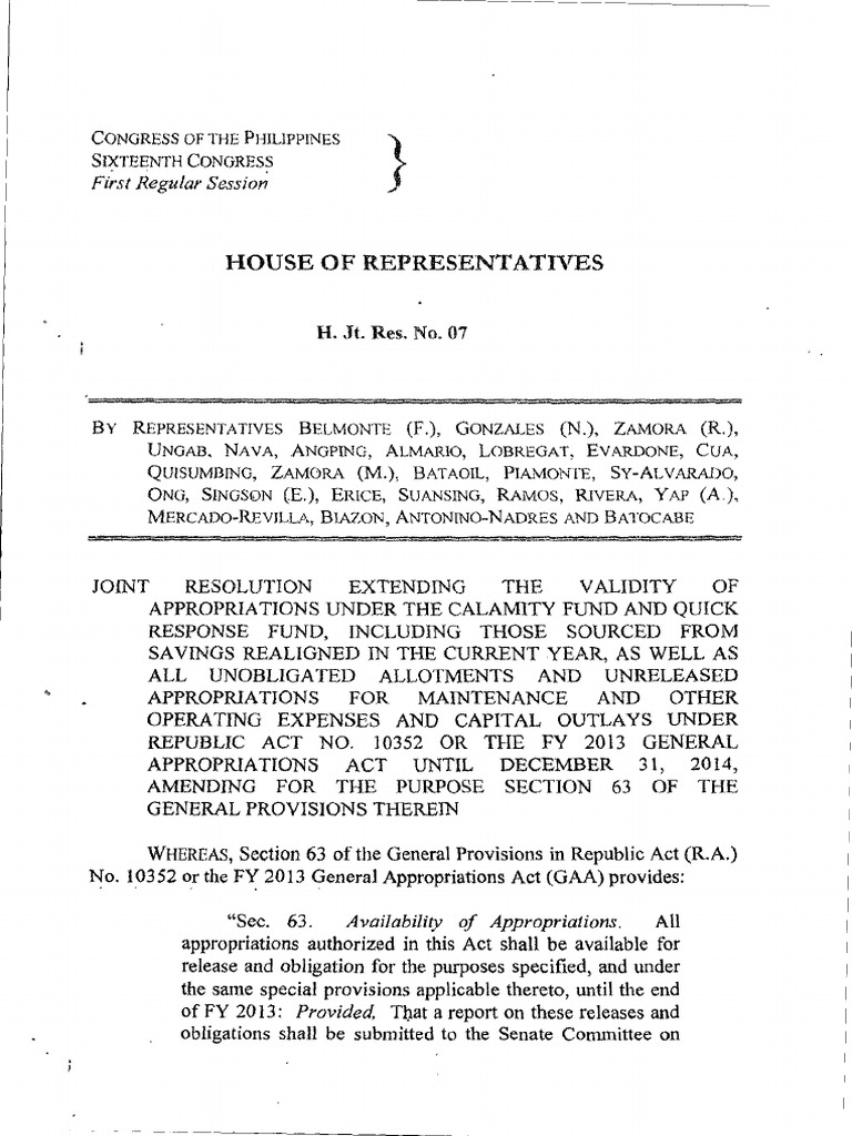 Congress Joint Resolution No. 1 | PDF | Government