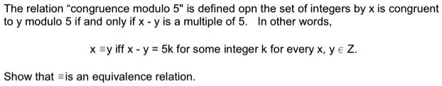 SOLVED: The relation "congruence modulo 5" is defined on the set of ...