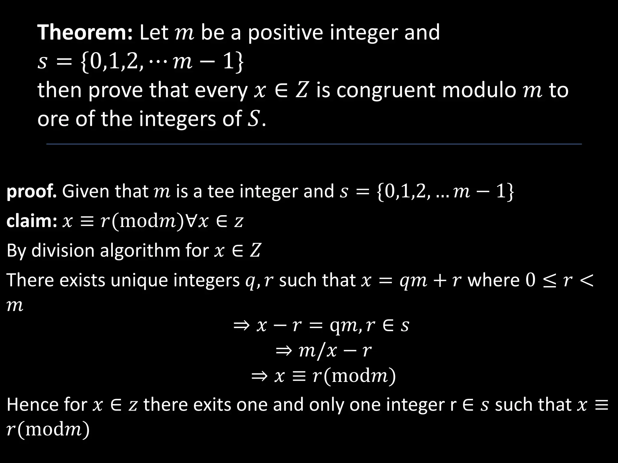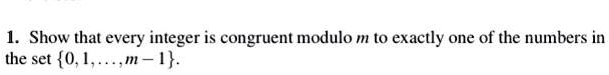 1 show that every integer is congruent modulo m to exactly one of the ...