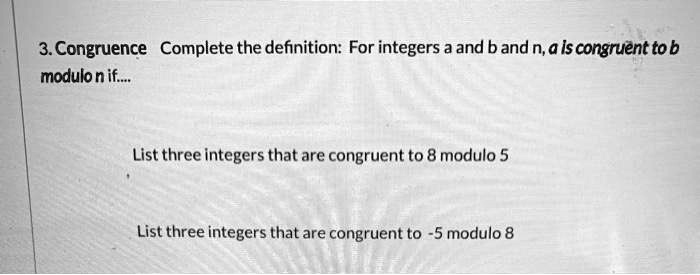 Solved CONGRUANCE AND MODULAR ARITHMETIC Definition. Let a, | Chegg.com