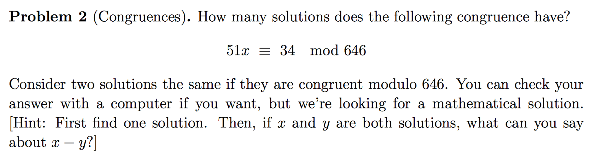 Solved 1 Congruence (10 pts) I and y being "congruent” under | Chegg.com