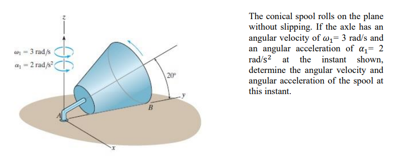 (Solved) - The conical spool rolls on the plane without slipping. If ...