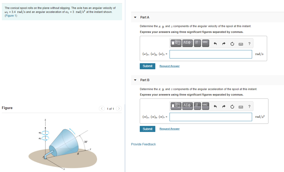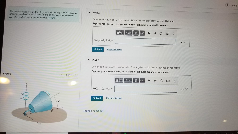 Solved C)6 of 9 Part A The conical spool rolls on the plane | Chegg.com