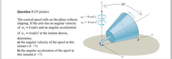 Solved Question 3 (35 points)The conical spool rolls on the | Chegg.com