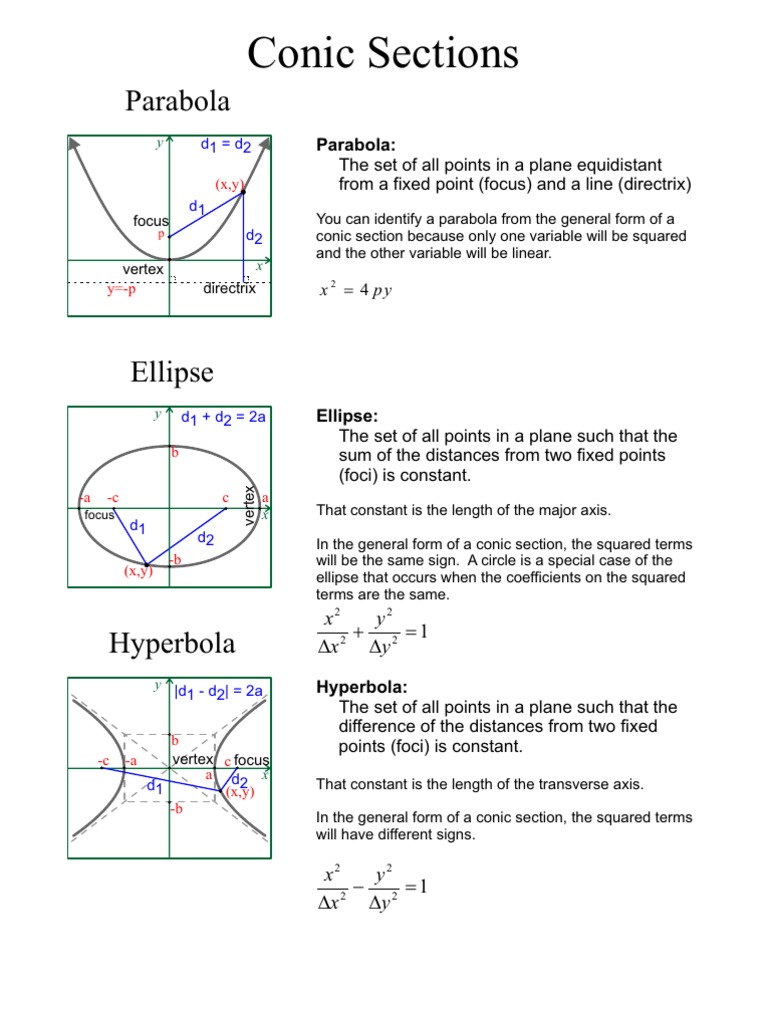 Conic Sections: Parabola, Ellipse, Hyperbola Notes
