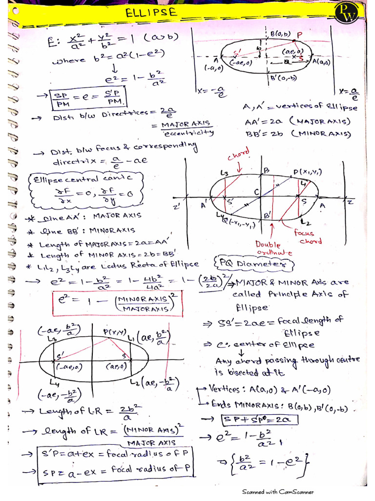 Conic Section (Ellipse) - Hand Written Notes | PDF