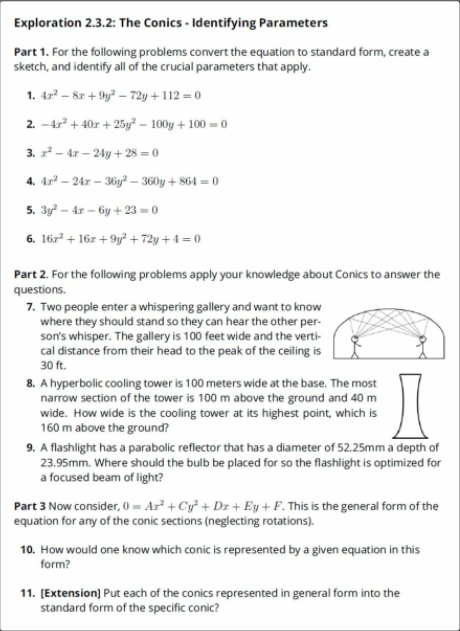 Conics Problems Activity 5 Math IV - Math III: regularity and ...