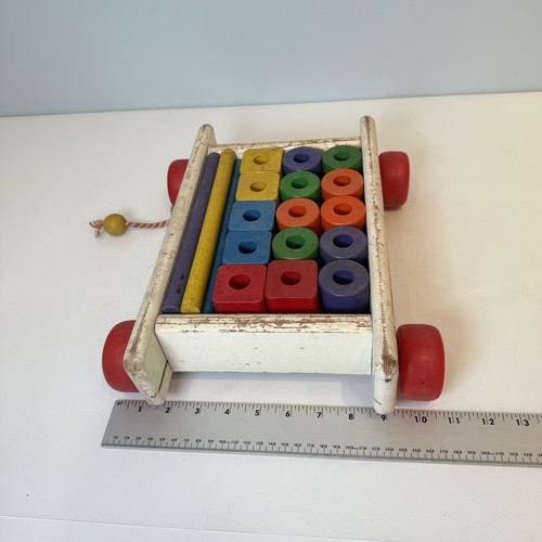 VTG PLAYSKOOL COL-O-ROL WAGON 9 Cylinder 6 Cubes 6 Rod Blocks Pull ...