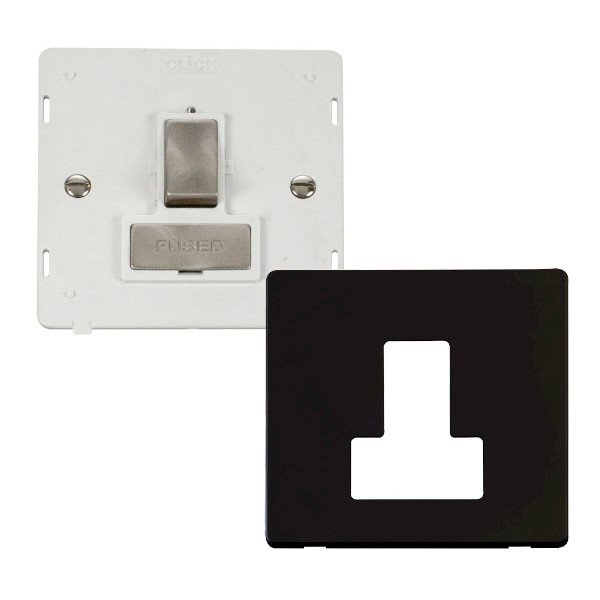 Click Definity Metal Black 13A Fused Connection Unit with White Chrome ...