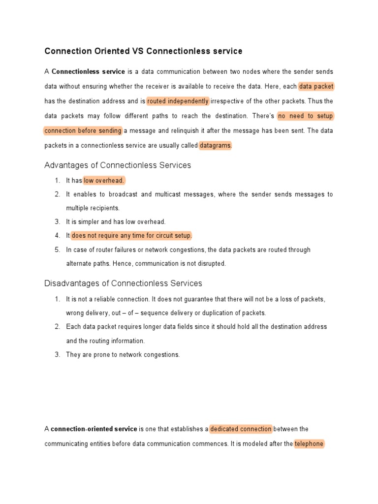 Comparison of Connection-Oriented vs Connectionless Protocols - Studocu