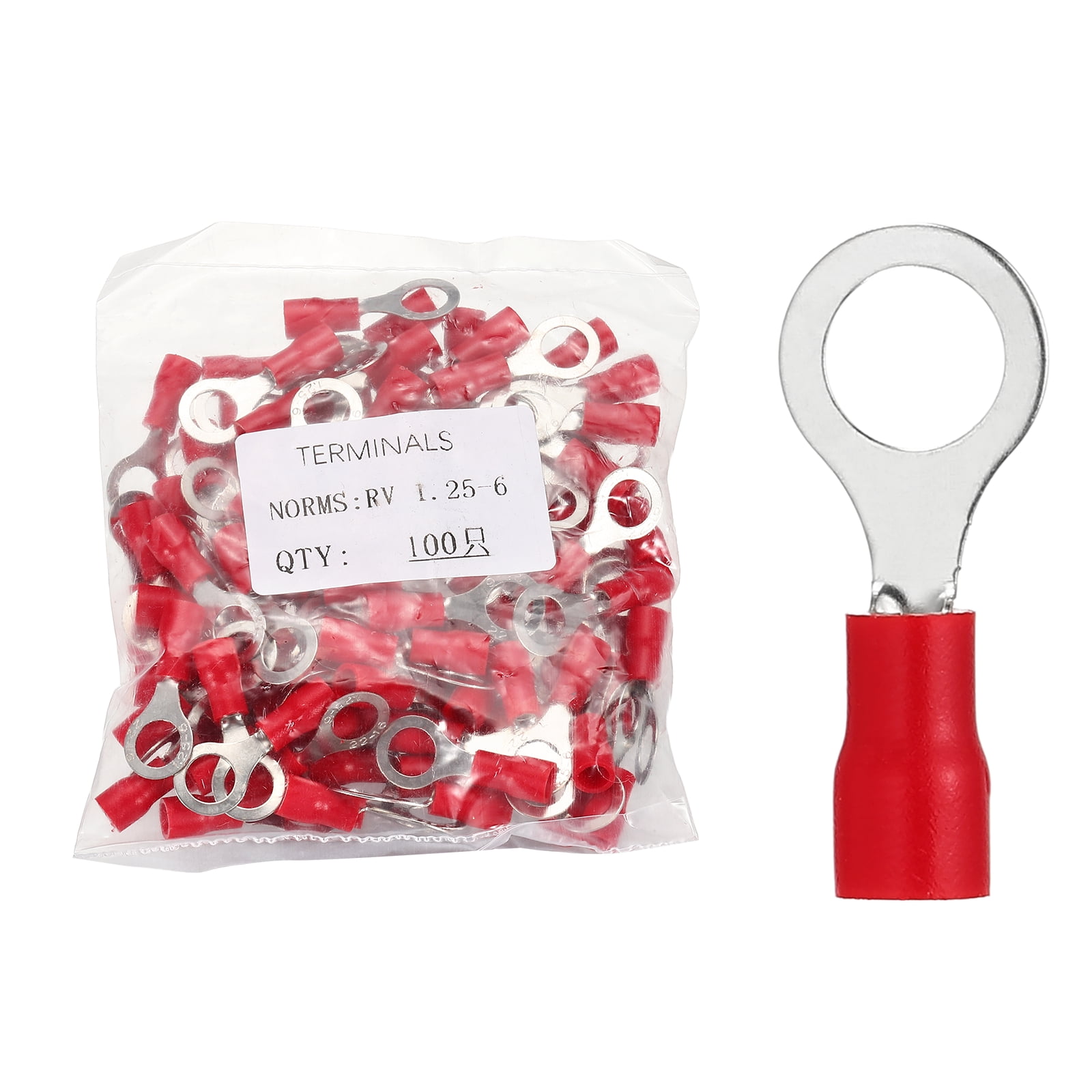 Uxcell 100pcs Terminals Ring Connectors #1/4" Tinned Copper Insulated ...