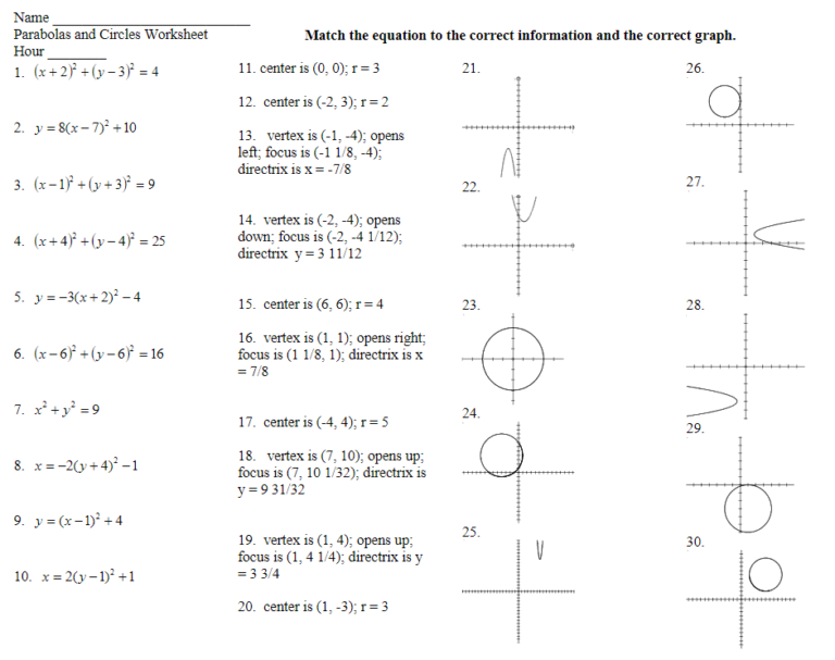 Algebra 2 Worksheets | Conic Sections Worksheets