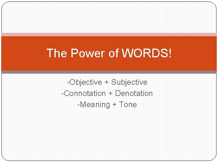 The Power of WORDS Objective Subjective Connotation Denotation