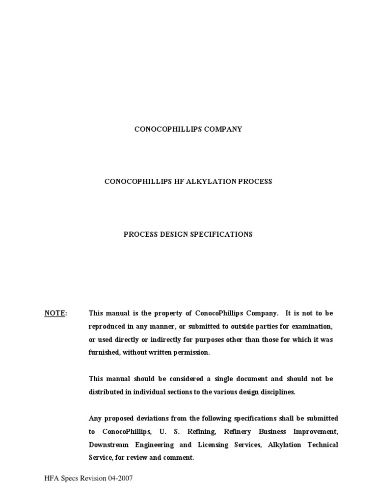 ConocoPhillips HF Alkylation Process Design Specifications - 2007 | PDF ...