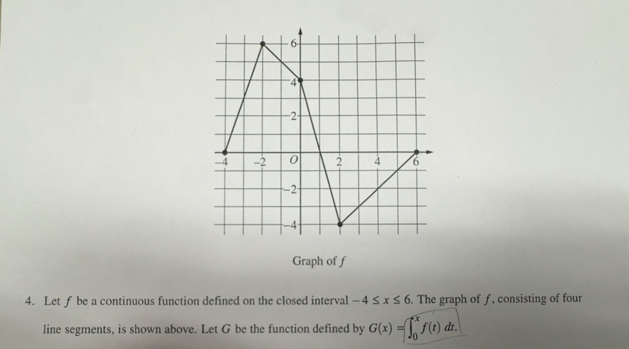 Solved: -6 4 −2 -4 -2 0 2 4 6 -2 -4 Graph of f 4. Let f be a continuous ...