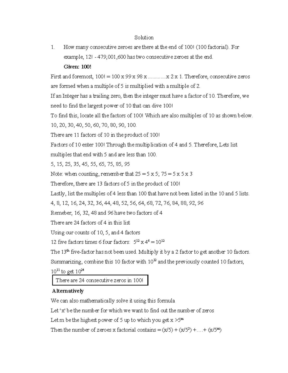 Consecutive Zeroes in 100! - MATHS Solution Analysis - Studocu