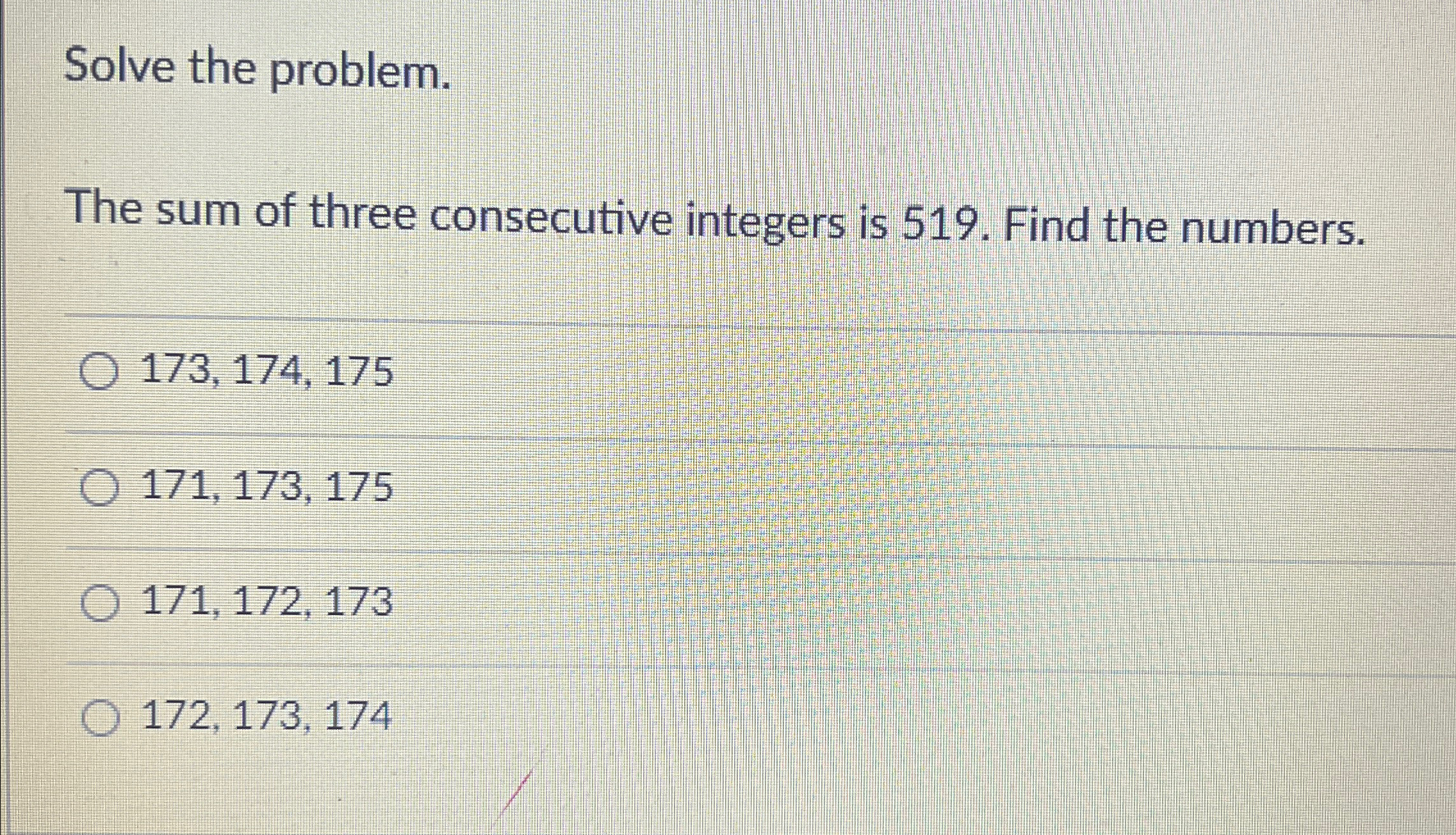 Solved Solve the problem. The sum of three consecutive | Chegg.com