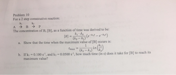 Solved Problem 10 For a 2 step consecutive reaction: k: The | Chegg.com