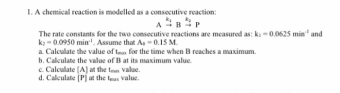 Solved 1. A chemical reaction is modelled as a consecutive | Chegg.com