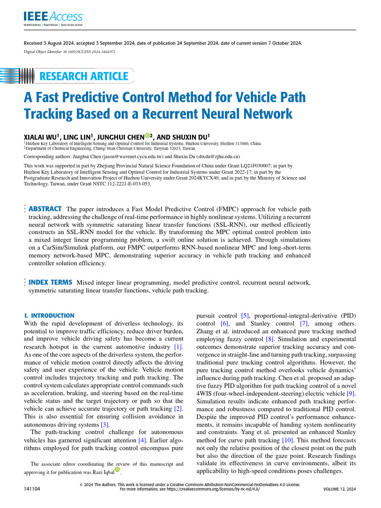 A Fast Predictive Control Method For Vehicle Path Tracking Based On A ...