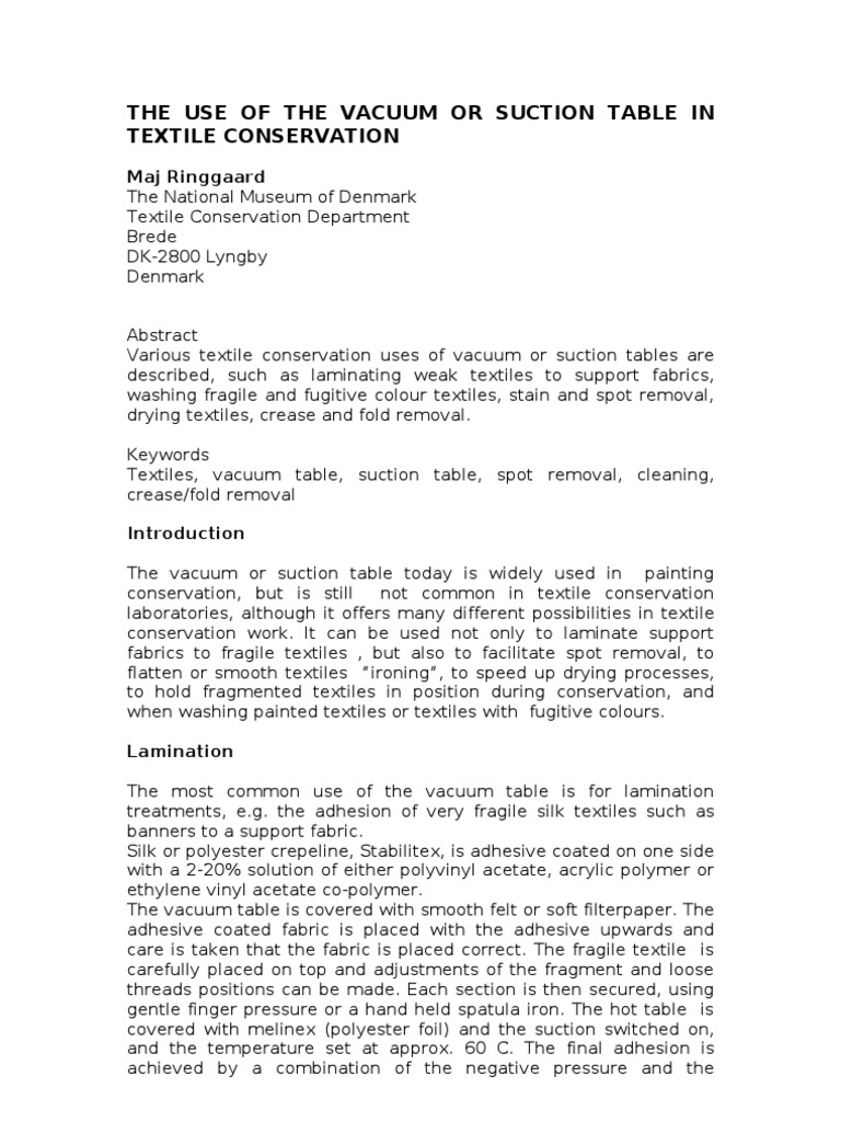 The Use of The Vacuum or Suction Table in Textile Conservation | PDF ...