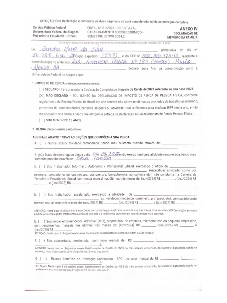 ATENÇÃO! Esta Declaração É Composta de Duas Páginas e Só Será ...