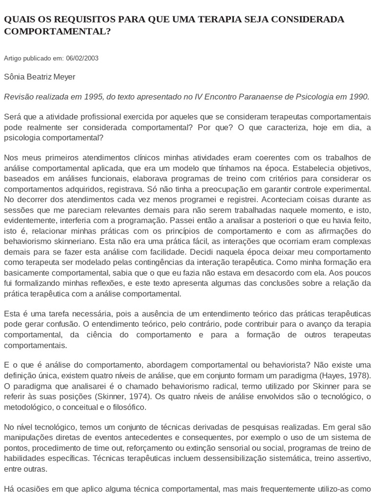 Requisitos para Que Uma Terapia Seja Considerada Comportamental | PDF ...