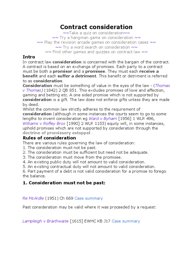 Consideration - An Essential Element of A Contract | PDF ...