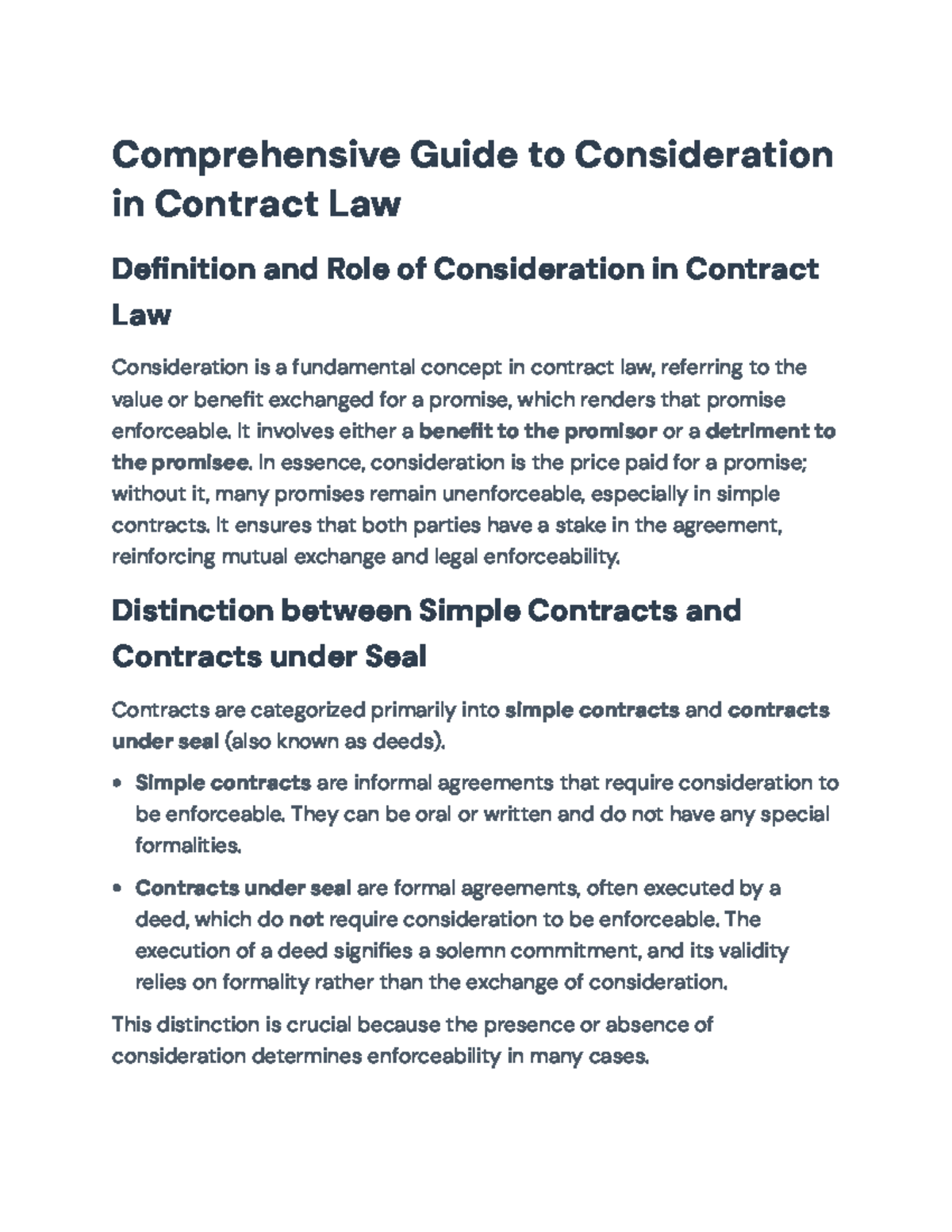 Comprehensive Guide to Consideration in Contract Law: Key Principles ...