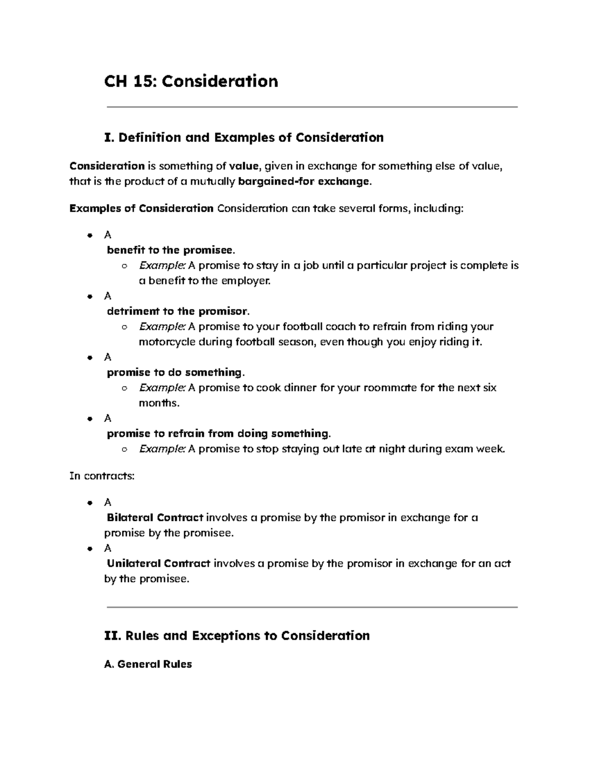 CH 15: Consideration in Contract Law - Definitions & Examples - Studocu